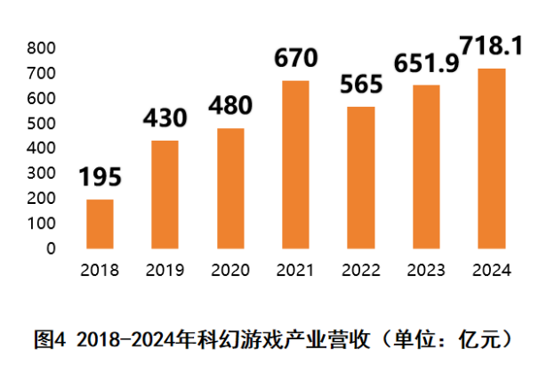 3.中国科幻游戏产业2024年总营收718.1亿元,同比增长10.2%。电脑端与主机端科幻游戏营收增速加快。科幻游戏制作水平显著提升。
